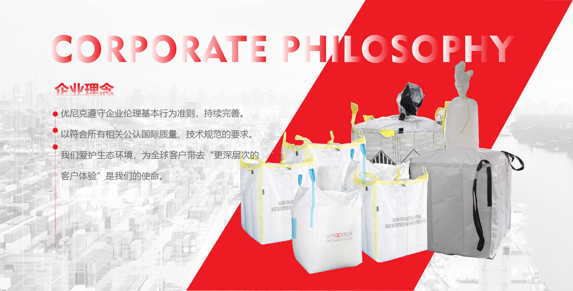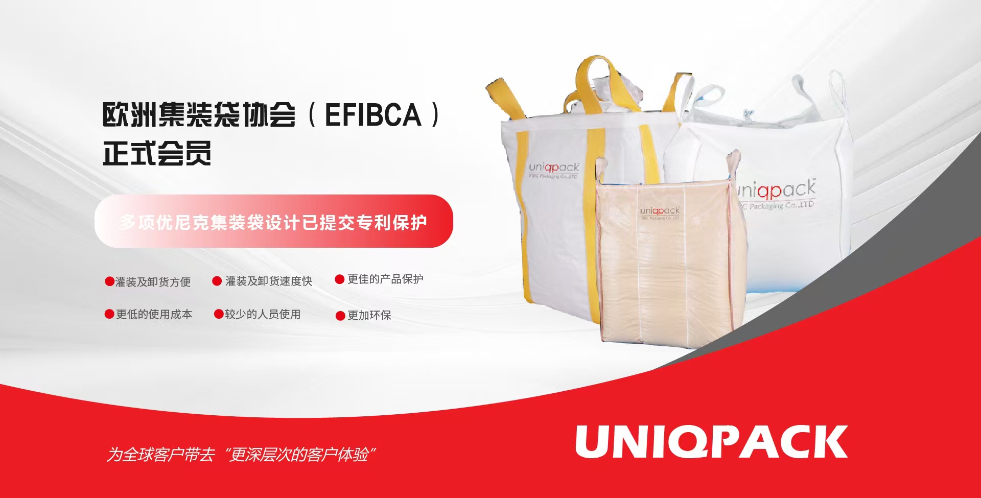常州优尼克包装有限公司上下游垂直整合,从设备到产品,用自产的集装袋整厂设备设计与生产自己的包装产品。优尼克致力于生产符合国际公认标准的各类集装袋及相关配套产品,产品涵盖普包类(Type A/B)、UN 危包类、静电防护类(Type C/D)、食品接触类、卫生包装类、拉筋袋、集装箱内袋、土工布等。